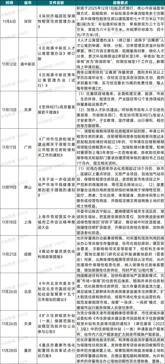 表:2025年11月地方出台的住房租赁市场指导与支持政策